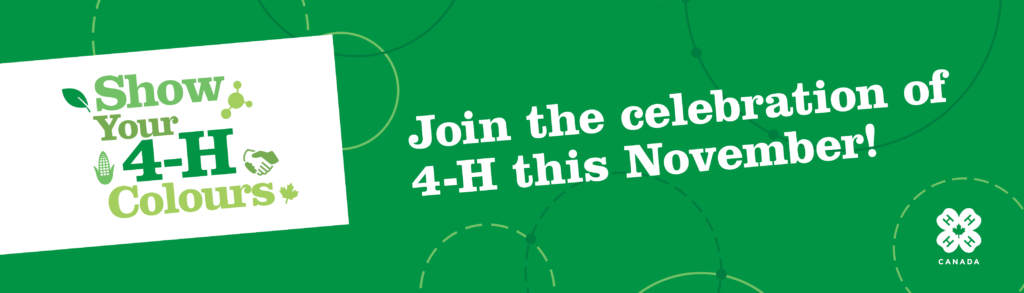 4-H is celebrating Show Your 4-H Colours this November 3, as part of 4-H Month, with youth members, volunteer leaders, alumni, and supporters showing their pride in being part of this 108-year-old community.