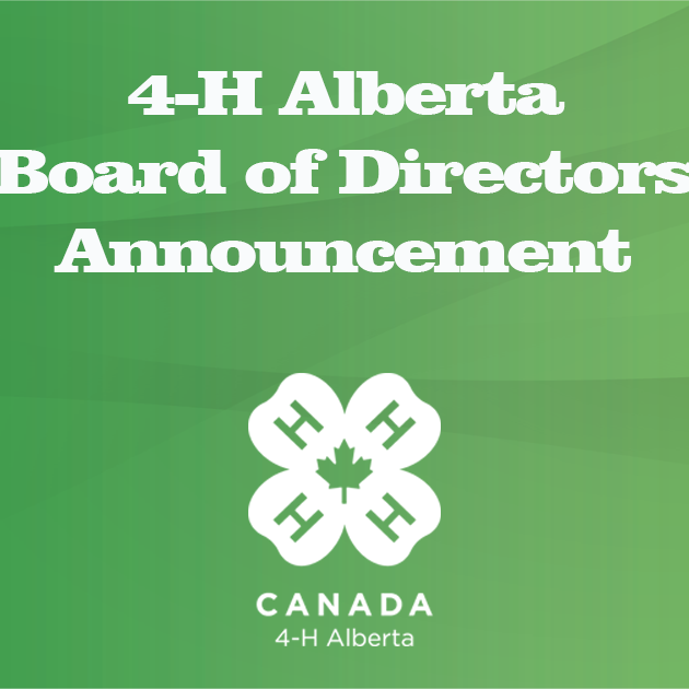 Announcement of new Board of Directors for 4-H Alberta